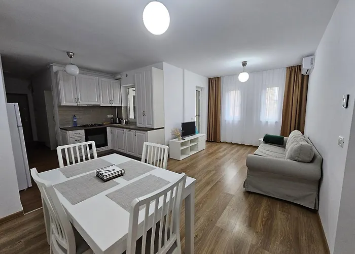 Der er en komfur top, køkkenudstyr og grundlæggende madlavningsfaciliteter i et fuldt udstyret køkken . Timisoara Traian Vuia International lufthavn er en 20-minutters kørsel væk.